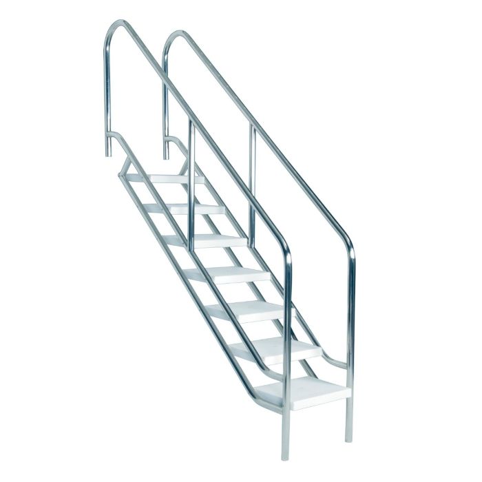 Ofrecemos estos modelos de escalera en dos tipos de acero inoxidable, AISI 304 y AISI 316, siendo el AISI 316 de mayor resistencia a la corrosión y recomendable en piscinas con cloración salina o piscinas cercanas al mar.