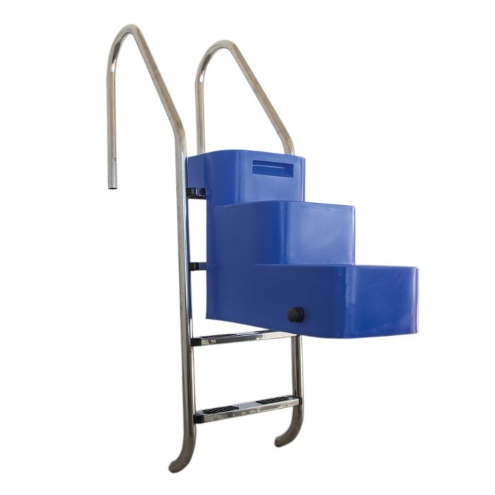 Ofrecemos estos modelos de escalera en dos tipos de acero inoxidable, AISI 304 y AISI 316, siendo el AISI 316 de mayor resistencia a la corrosión y recomendable en piscinas con cloración salina o piscinas cercanas al mar.