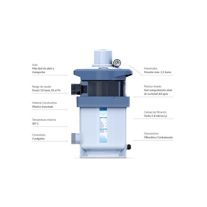 - Compatible con equipos de filtrado y bombeo actuales.