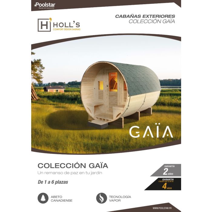 Sauna exterior de vapor tradicional con un elegante y cálido diseño tipo barril.