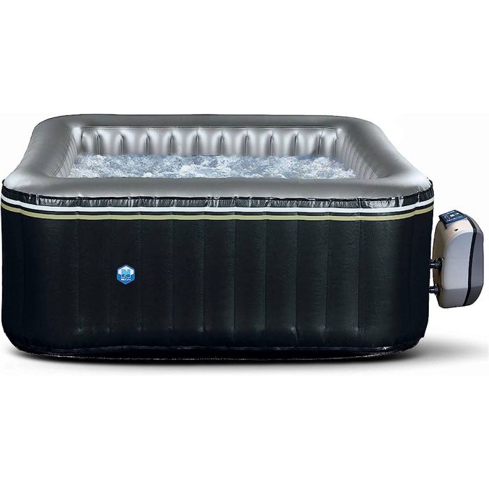 NUEVO Todo lo que necesitas en tu día a día, te lo llevamos hasta casa. Jacuzzi para 4 personas. Recubrimiento exterior de cuero sintético negro e interior en libre color gris perla, con formato cuadrado compacto y elegante. Bloque de motor NetSpa inteligente y eficiente con 3 funciones: calefacción, masaje y filtración. VENTAJAS + Instalación sencilla y rápida (inflador integrado) + Diseño cuadrado ideal para espacios reducidos + Alfombra de confort + Tapa aislante 100% segura + Doble protección del calentador + Motor triple funciónMasaje / Calentamiento / Filtrado